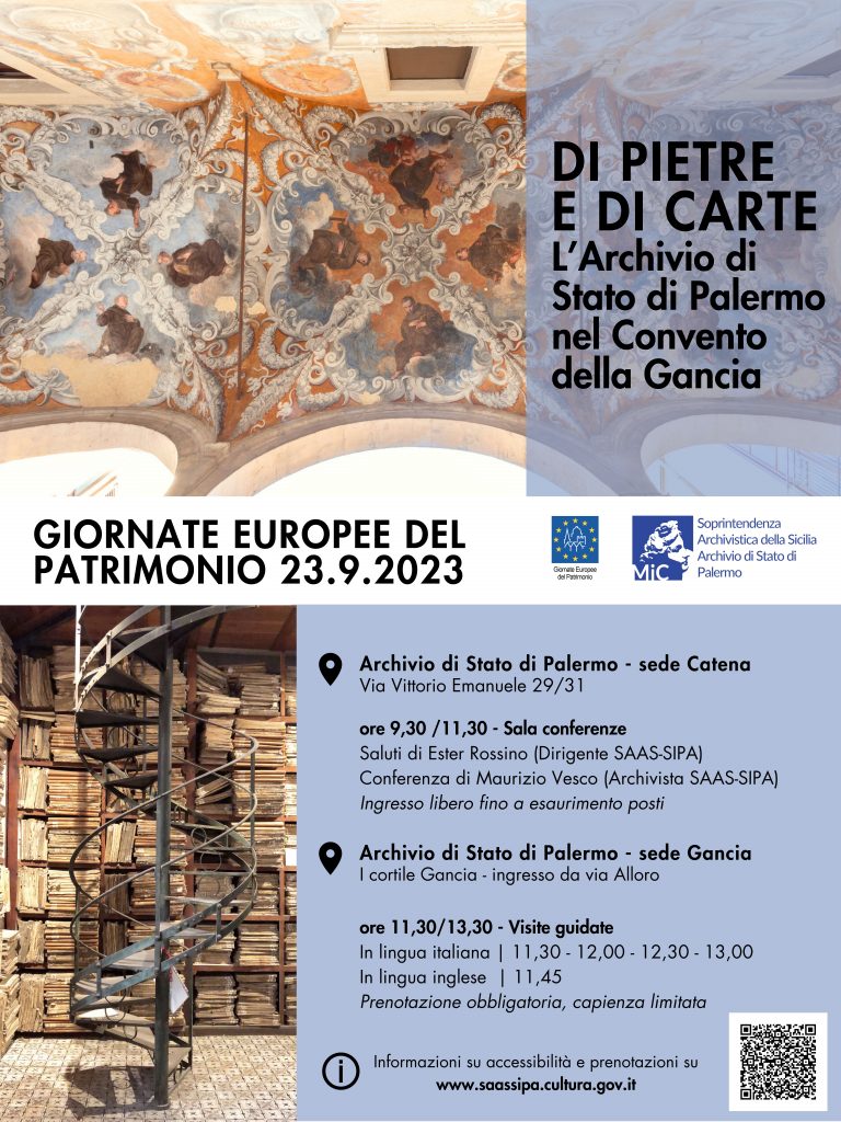 23 settembre 2023, Giornate Europee del Patrimonio | Di pietre e di carte. l’Archivio di Stato di Palermo nel Convento della Gancia