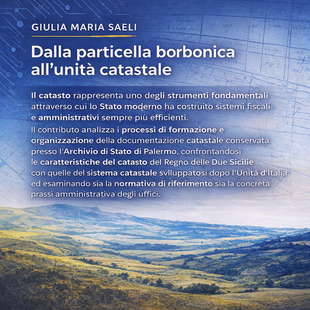 2. Giulia Maria Saeli, borsista DicoLab | “Dalla particella borbonica all’unità catastale: analisi dei processi e dei documenti catastali conservati presso l’Archivio di Stato di Palermo”  | Discussant: Dott. Salvatore Spica,  Prof.ssa Sara Manali