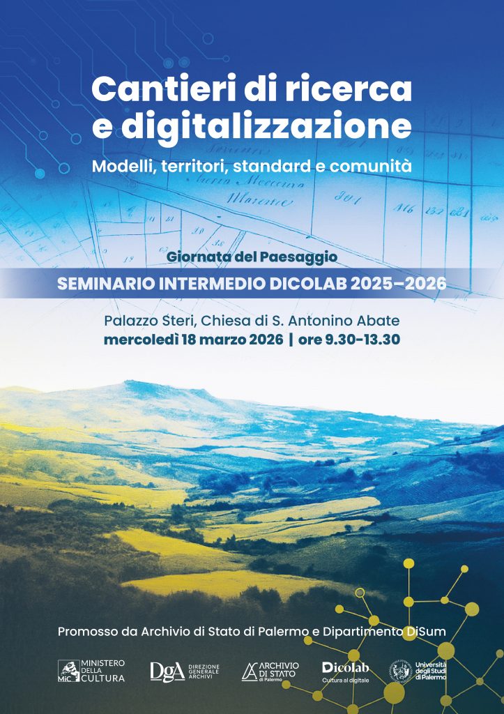 In occasione della Giornata Nazionale del Paesaggio, l’Archivio di Stato di Palermo, in collaborazione con il Dipartimento di Scienze Umanistiche dell’Università degli Studi di Palermo, promuove un momento di riflessione e condivisione dedicato proprio a questo intreccio tra archivi, territori e memoria, con il seminario “Cantieri di ricerca e digitalizzazione. Modelli, territori, standard e comunità”. L’incontro si terrà mercoledì 18 marzo 2026 a Palazzo Steri – Chiesa di S. Antonino Abate, ore 9:30-13:30.